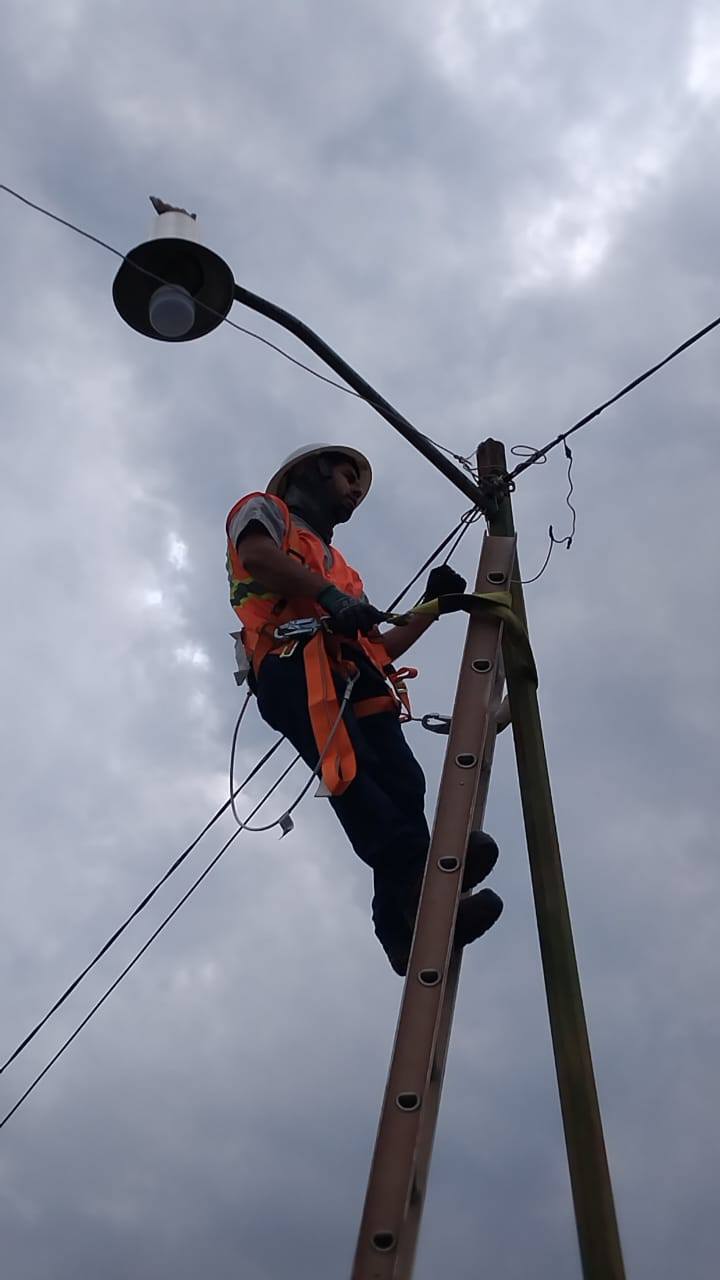 Personal de la Dirección de Obras y Servicios Públicos trabaja en la restitución de luminarias reportadas por la ciudadanía, atendiendo de manera directa las necesidades de iluminación en calles y espacios públicos.
