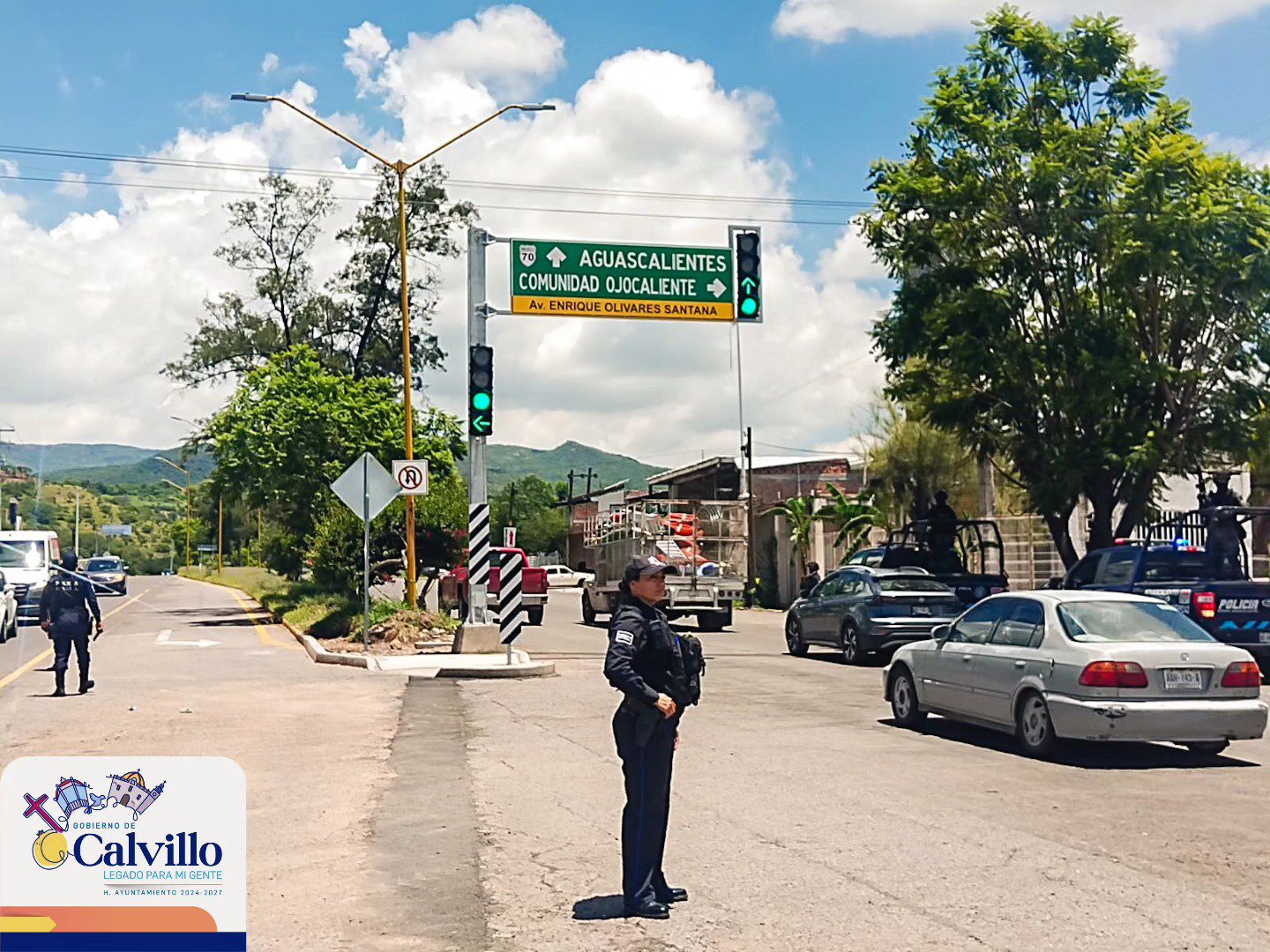 Calvillo, Aguascalientes. – El Gobierno Municipal de Calvillo, a través de la Secretaría de Obras Públicas, puso en funcionamiento los nuevos semáforos en el entronque de Ojocaliente, una zona de alta circulación que a partir de ahora contará con mayor control y orden vial.