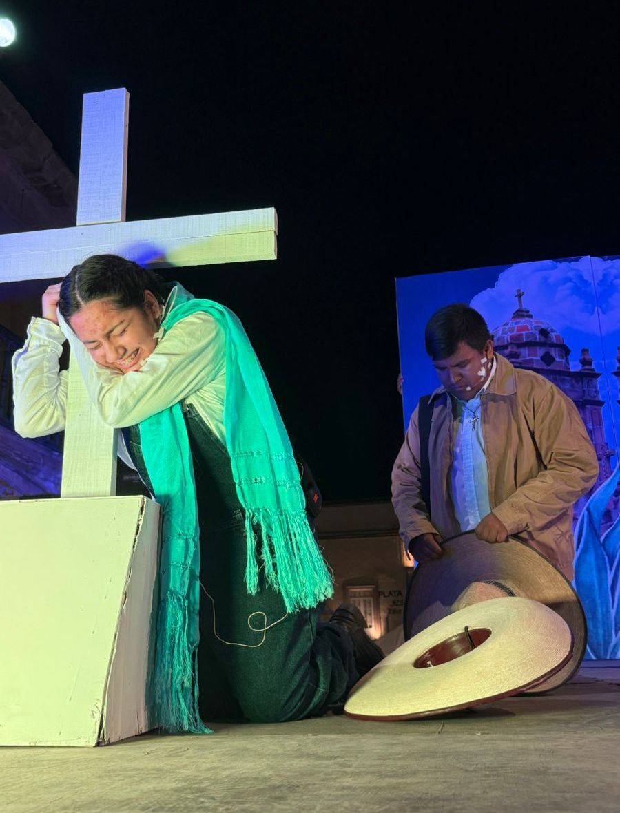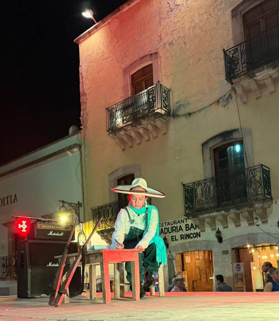 Uno de los momentos más destacados fue la presentación de la obra teatral inspirada en un libro infantil de la escritora jalpense Aida Salazar, quien viajó desde California para presenciar el montaje. En escena participaron cinco jóvenes actores originarios de Jalpa: Adara Anaya Durán, Alexis Contreras, Emmanuel Alcocer, Efraín Sánchez y Haziel Gómez, quienes se presentaron en la explanada de Plaza Goitia.