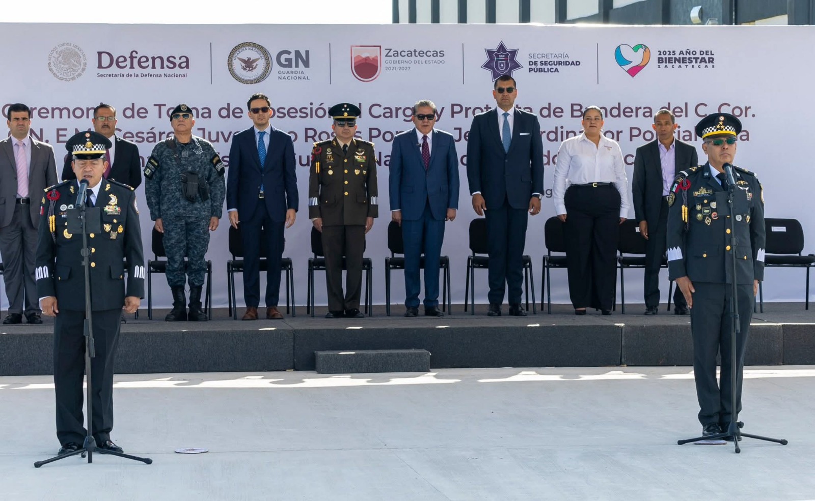 “Nos da mucha confianza y mucha tranquilidad, de que se sume la experiencia, capacidad y conocimiento porque hemos sido testigos de la larga trayectoria, de la vida entregada a nuestra patria a través de la formación militar, y ahora sirviendo en la Guardia Nacional; con todo un amplio currículum”, externó el mandatario zacatecano.