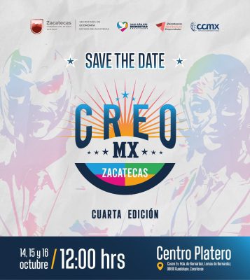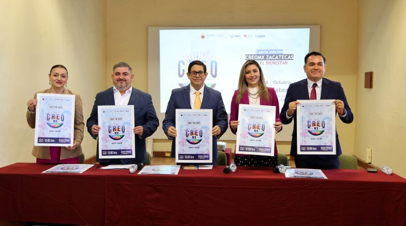 Guadalupe, Zac., 19 de agosto de 2025.- El Gobierno de Zacatecas, encabezado por David Monreal Ávila, anunció la realización de la cuarta edición de CREO MX 2025, que se llevará a cabo los días 14, 15 y 16 de octubre en el Centro Platero.
