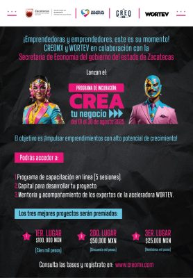 - CREO MX 2025 reunirá a emprendedores, MiPymes, jóvenes universitarios y mujeres zacatecanas, ofreciendo capacitación, mentorías y acceso a financiamiento para fortalecer sus proyectos y negocios