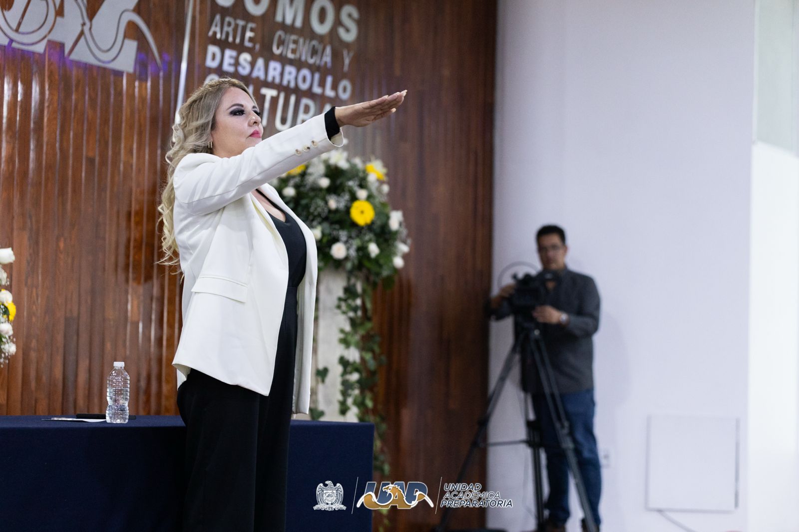 Zacatecas, Zac.- Con un mensaje lleno de sensibilidad, compromiso y visión de futuro, Tania Libertad Sánchez Romero tomó protesta como directora de la Unidad Académica de Preparatorias de la Universidad Autónoma de Zacatecas (UAZ), destacando que asumir este cargo no es solo un honor, sino un acto profundamente humano.