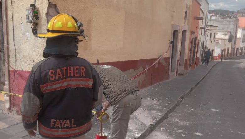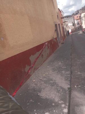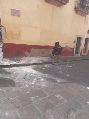 Zacatecas.– Personal operativo de la Coordinación Estatal de Protección Civil y del Departamento del Atlas de Riesgos acudió a la calle Primero de Mayo tras un reporte ciudadano sobre una barda con peligro de colapsar.
