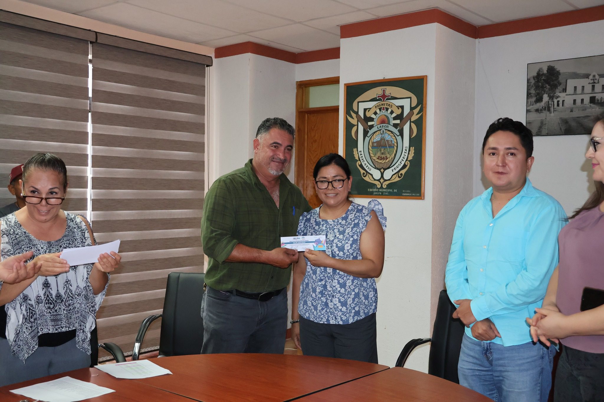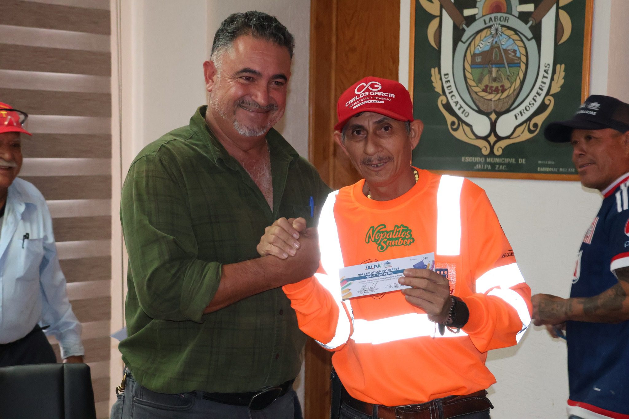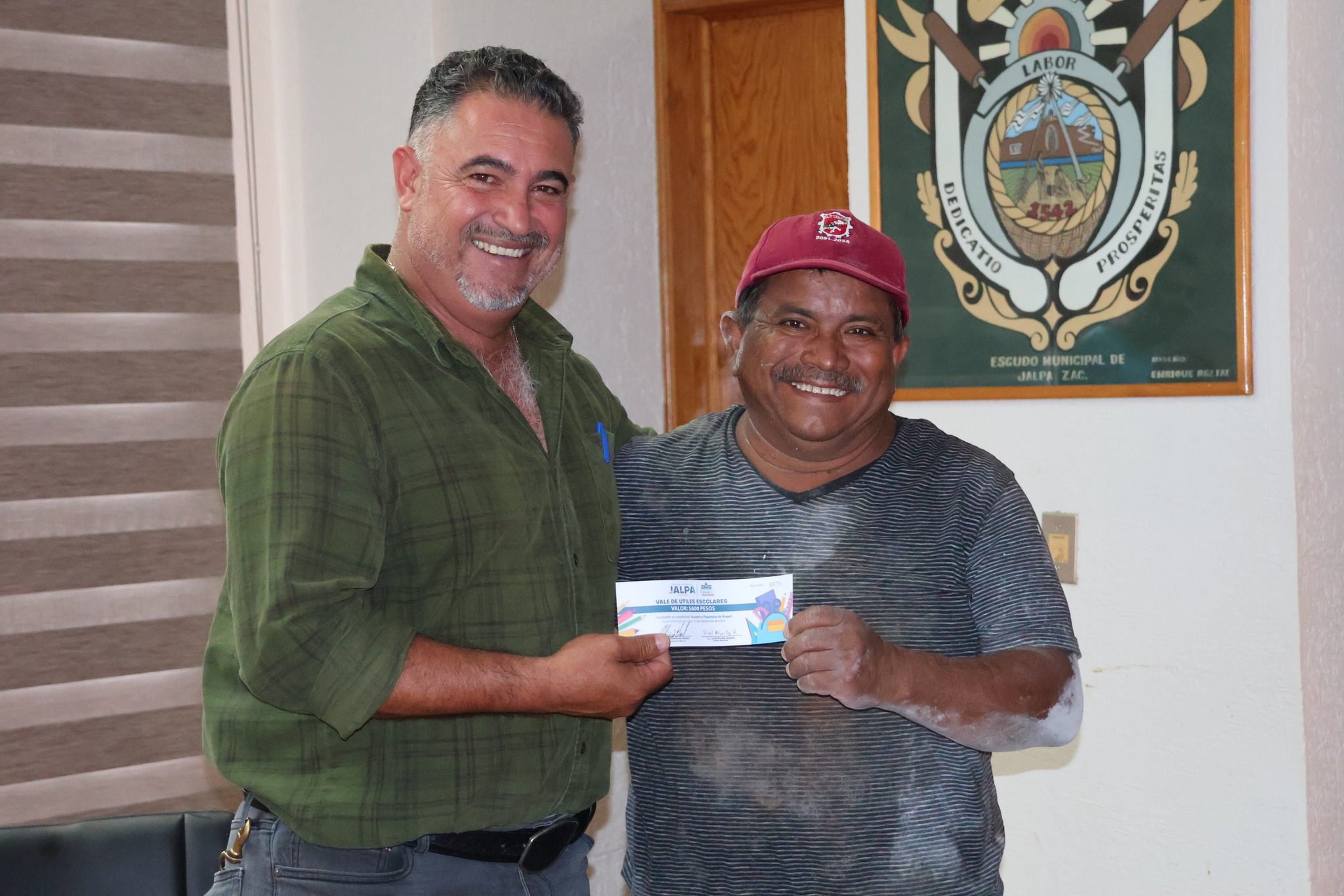 El acto se llevó a cabo en el salón de cabildo, donde el presidente municipal estuvo acompañado por la líder sindical, Isabel Esparza, y el tesorero municipal, Uriel Murillo. En total se entregaron 104 vales de apoyo para la adquisición de útiles escolares, así como 40 becas destinadas a estudiantes.