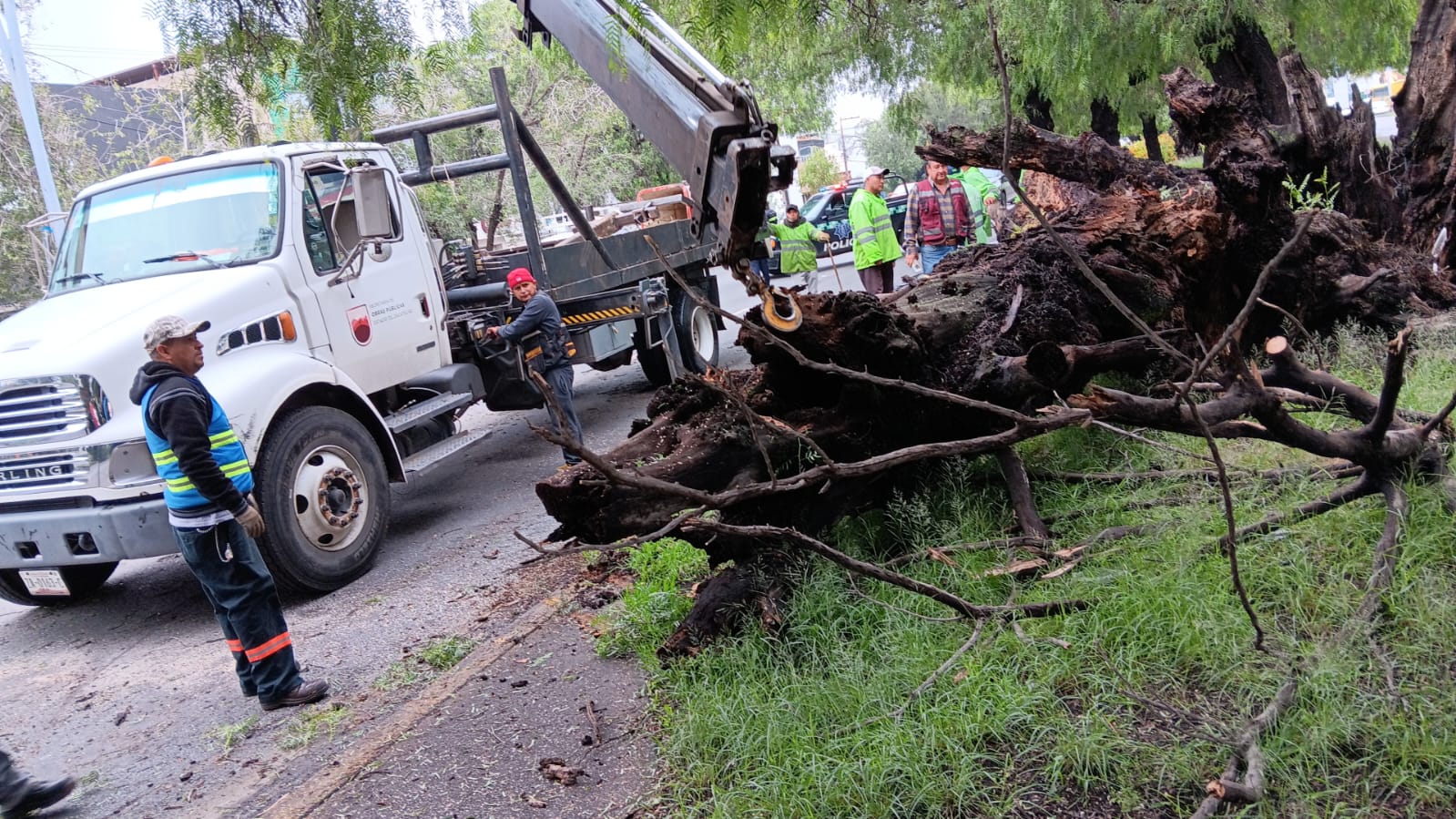 Al lugar acudió la unidad 109 de la CEPC, a cargo de José Oliva y Edgar Llanas, quienes iniciaron las maniobras de retiro del tronco. En apoyo se sumó la Policía Vial, al mando de José Menchaca, con las unidades 4142 y 1950, así como cuatro elementos de corporación.