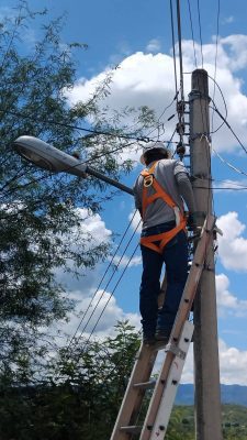 El personal de Obras y Servicios Públicos ha trabajado en la reparación y sustitución de luminarias reportadas por los habitantes, con el propósito de prevenir accidentes y garantizar calles mejor iluminadas para el tránsito peatonal y vehicular.
