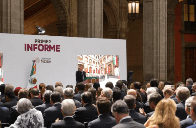 Expuso que han sido 11 meses de trabajo arduo, por lo que agradeció a todo su Gabinete legal y ampliado, a las y los gobernadores su apoyo. Acompañaron a la Presidenta en su Primer Informe de Gobierno, gobernadoras y gobernadores de los estados; representantes del Poder Legislativo y Judicial; integrantes del Gabinete legal y ampliado, del Consejo Nacional de Pueblos Indígenas, empresarios, organismos autónomos, comunidad educativa, artística y cultural.