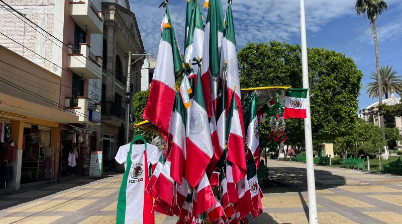 Vendedores ambulantes comienzan a ofrecer artículos patrios en la plaza principal de Jalpa