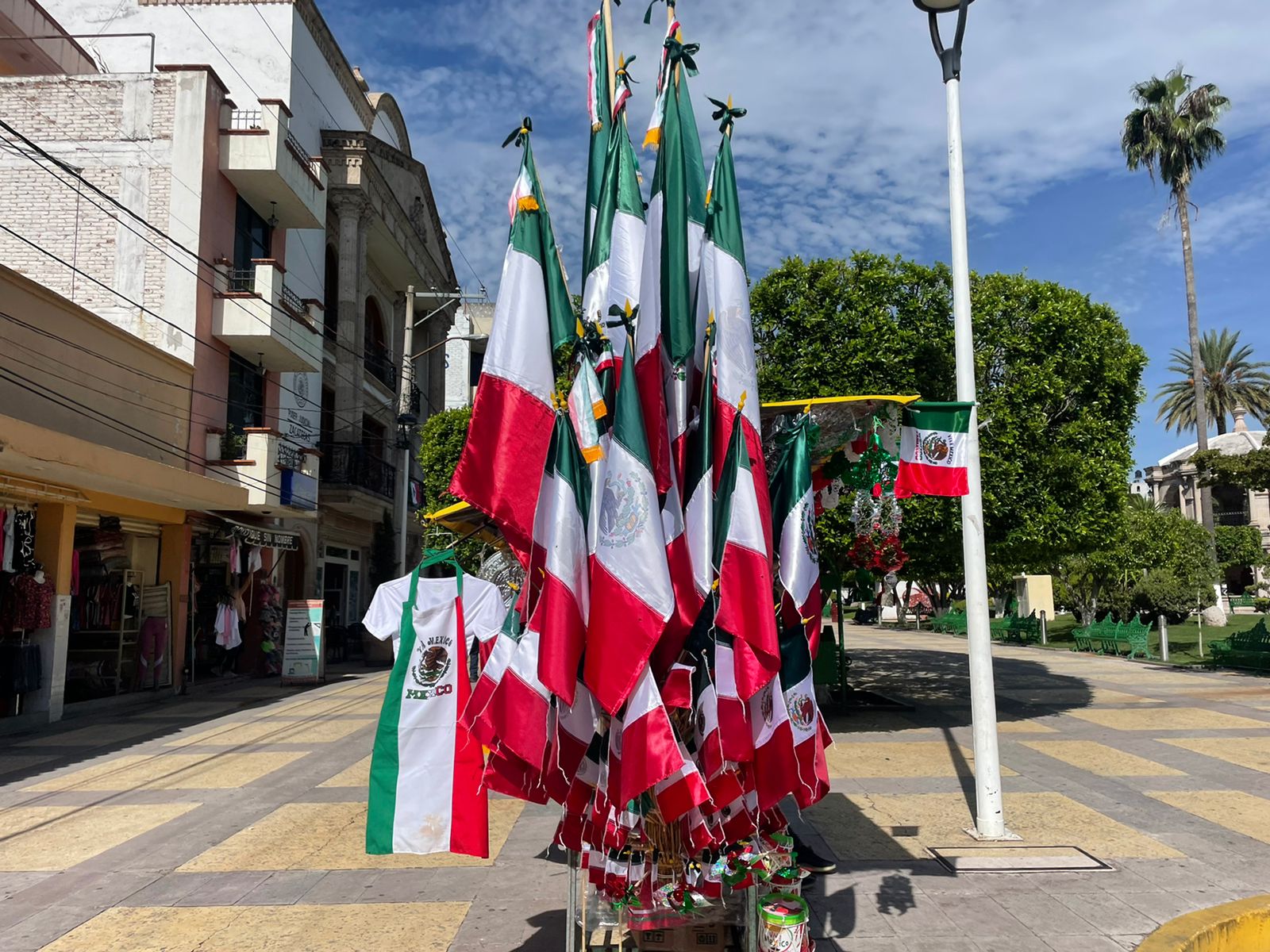 Jalpa, Zacatecas. – Con la cercanía de las celebraciones del 15 de septiembre, fecha en la que se conmemora el Grito de Independencia, vendedores ambulantes comenzaron a instalarse en la plaza principal de Jalpa ofreciendo una amplia variedad de productos con motivos patrios.