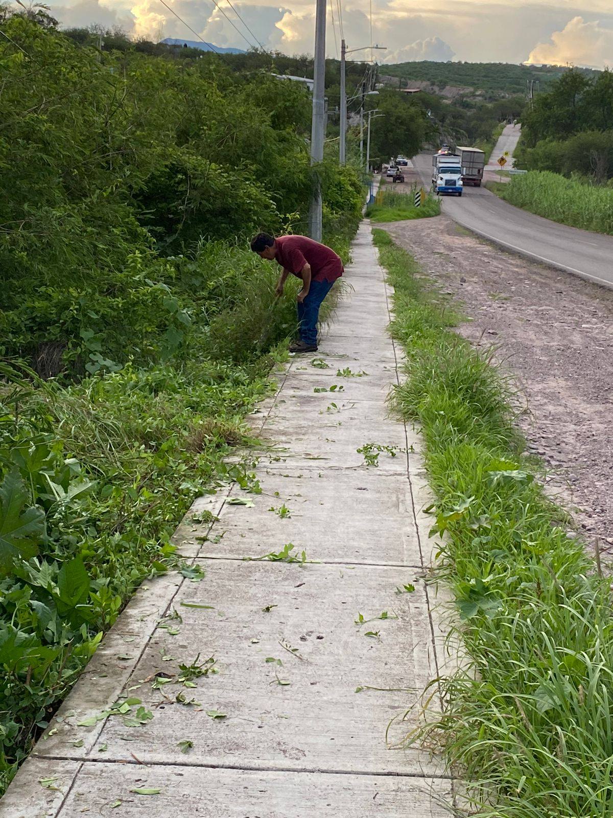 Apozol, Zacatecas.- Durante la presente temporada de lluvias, la hierba crece con mayor rapidez, lo que representa un desafío para mantener en condiciones seguras y ordenadas los espacios públicos del municipio.