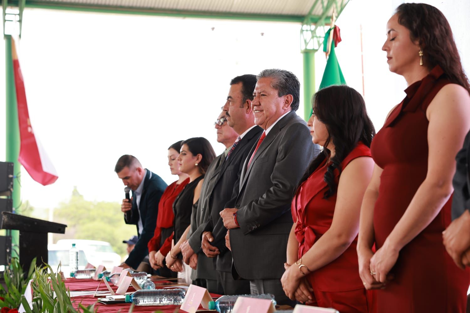 Anunció la próxima construcción del Destacamento Regional de Seguridad (Deres) de Tepetongo, tras resolver los trámites legales del predio donado por ejidatarios, lo que permitirá consolidar la presencia institucional y brindar certeza y confianza a las y los habitantes.