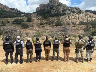 Una de las células acudió a la Sierra de Cardos, en el municipio de Jerez, en donde llevaron a cabo, con apoyo de drones y georadar, una prospección forense, en un polígono determinado, como seguimiento de las carpetas de investigación que integra la Fiscalía General de Justicia.