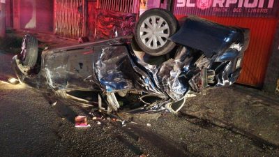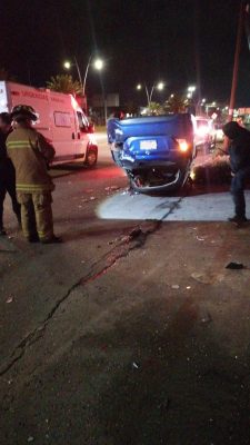 Zacatecas, Zac.– La Coordinación Estatal de Protección Civil informó sobre un accidente tipo volcadura ocurrido en el bulevar Revolución Mexicana, donde un vehículo compacto terminó impactando contra otros automóviles y una estructura metálica.