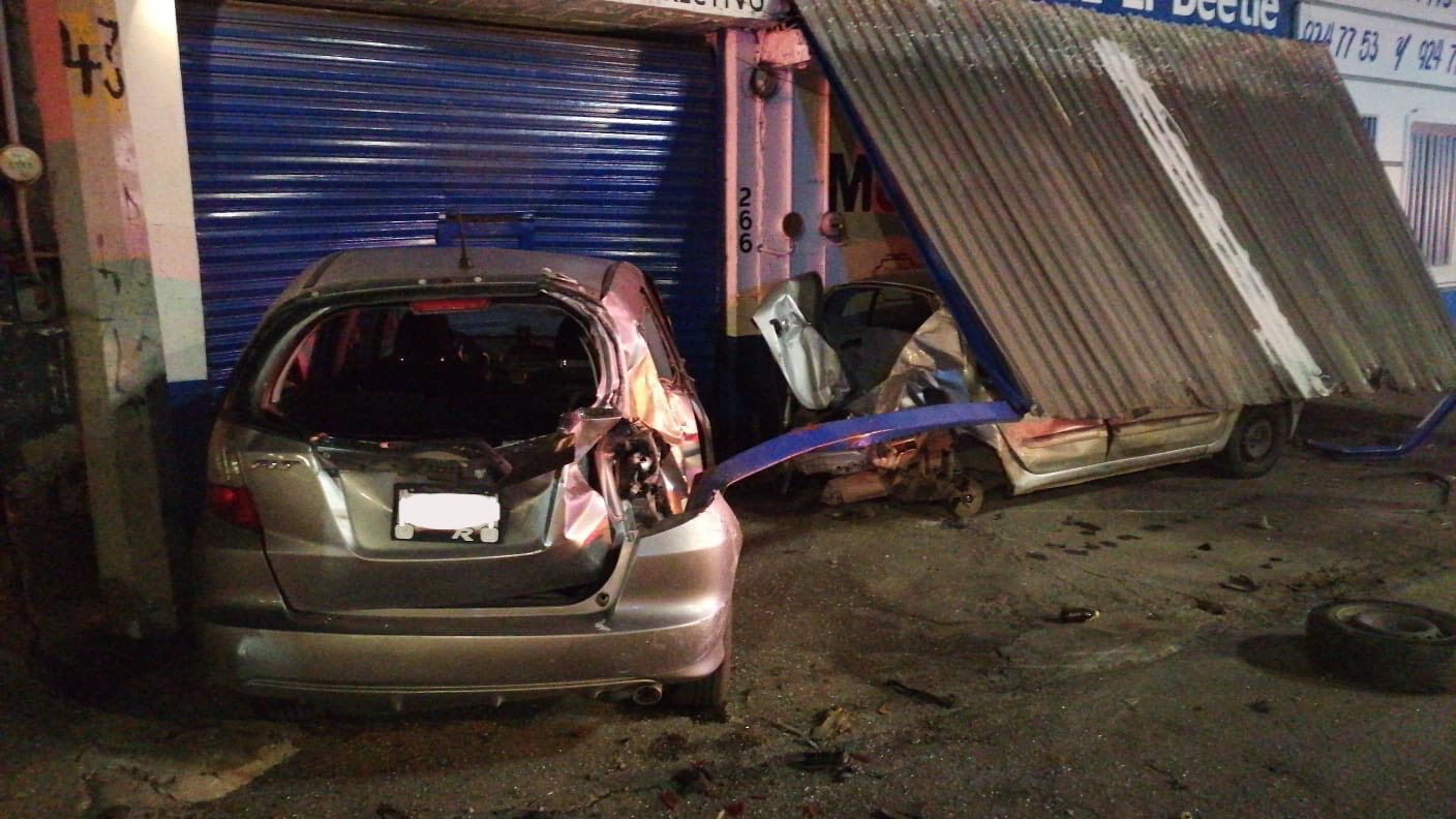 De acuerdo con el reporte, el vehículo involucrado fue localizado abandonado en el lugar de los hechos, tras haber chocado contra dos unidades particulares y un tejabán, lo que ocasionó únicamente daños materiales.