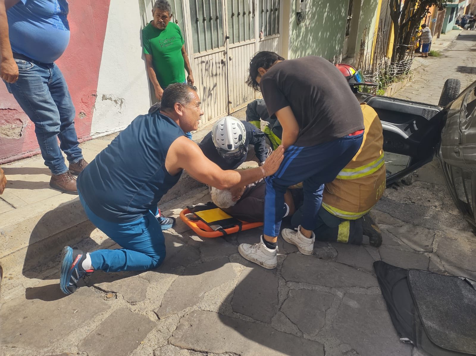 En el lugar se localizó a un hombre de 91 años que había quedado atrapado dentro del vehículo. Personal de rescate realizó maniobras para su extracción y posteriormente fue trasladado, en condición estable, a un hospital por paramédicos de la propia corporación.