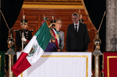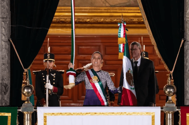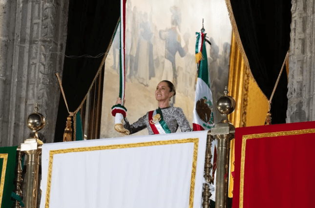 Ante aproximadamente 280 mil mexicanas y mexicanos que se dieron cita en el magno Zócalo de la Ciudad de México, la Jefa del Ejecutivo Federal ondeó en el balcón principal de Palacio Nacional la bandera nacional, que recibió por primera vez en la historia de mujeres militares pertenecientes al Heroico Colegio Militar: de la abanderada teniente de Policía Militar, Jennifer Samantha Torres Jiménez y de la escolta conformada por las cabo de cadetes Samira Michel Delgadillo Chávez; Itzel Sarahi Martínez Tozcano; Karla Paola Guevara Pérez; y las cadetes Andrea Carvajal Audelo y Yetzelany Gallegos Ortiz.