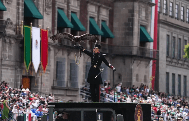 Como parte del Desfile Cívico Militar, siete paracaidistas: cinco del Ejército mexicano y dos de la Secretaría de Marina, realizaron un salto libre acrobático. Y la teniente Jenny Concepción Bolaños Sánchez, perteneciente a la Guardia Nacional, fue la encargada de declamar la poesía “A la Patria”, de la autoría del poeta Manuel Acuña.