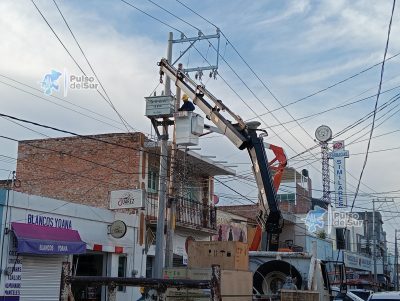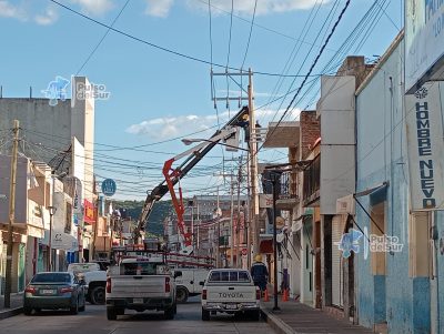 Jalpa, Zacatecas. – Tras más de 24 horas de suspensión del servicio eléctrico en varias calles del centro de la cabecera municipal, cuadrillas de la Comisión Federal de Electricidad (CFE) y personal de Obras Públicas del municipio avanzan en el cambio del transformador dañado.