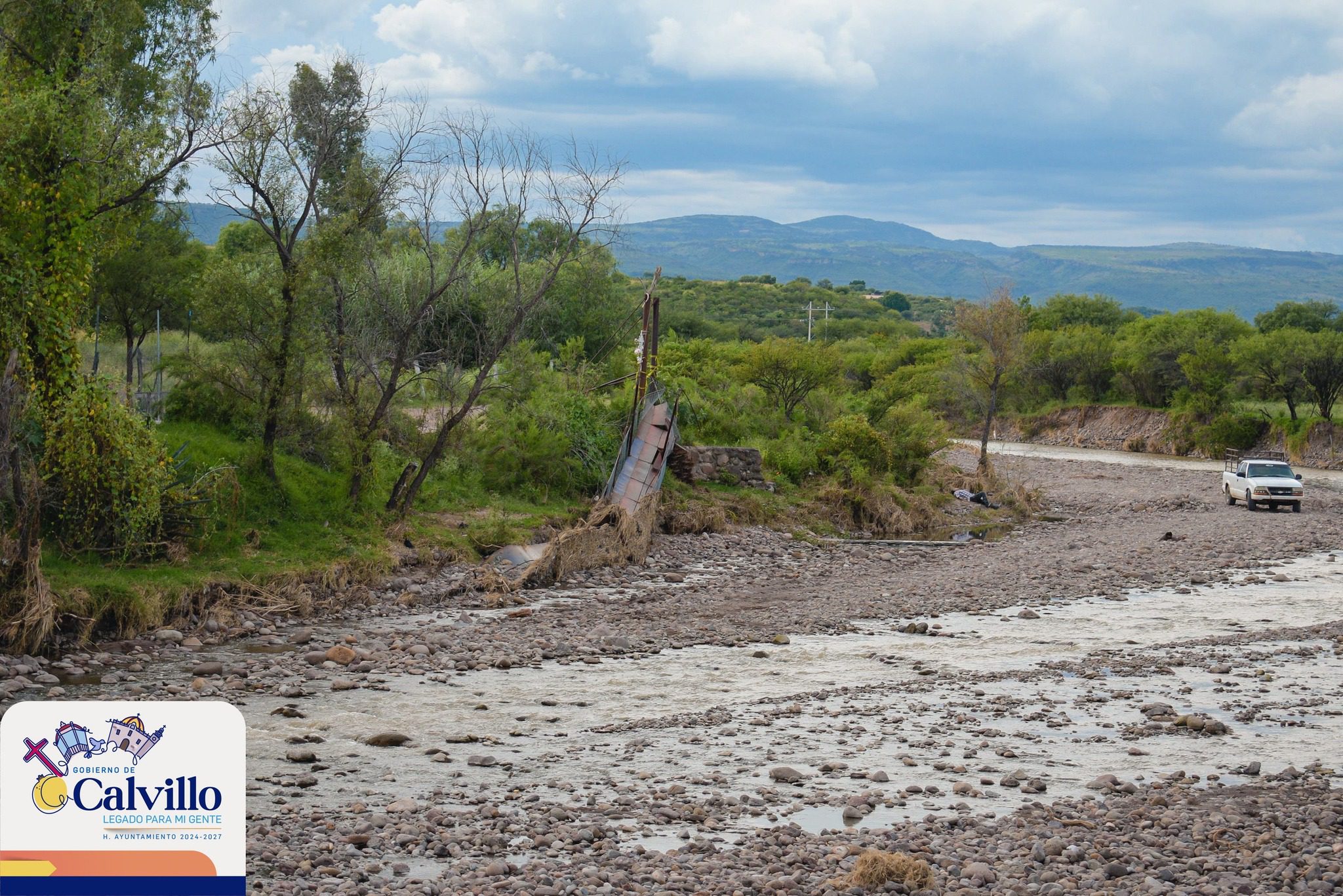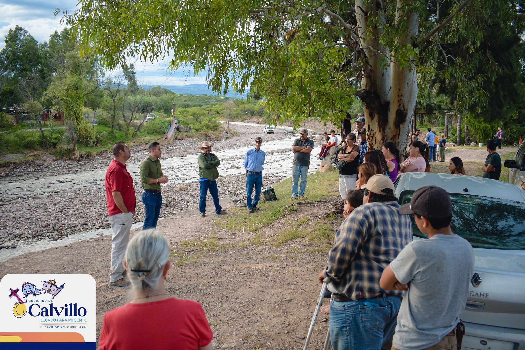 Calvillo, Aguascalientes. – El presidente municipal de Calvillo, Daniel Romo, se reunió esta tarde con habitantes de la comunidad de El Chiquihuitero para dialogar sobre la situación que enfrenta la localidad tras la pérdida del puente, ocasionada por la creciente del río en días recientes.