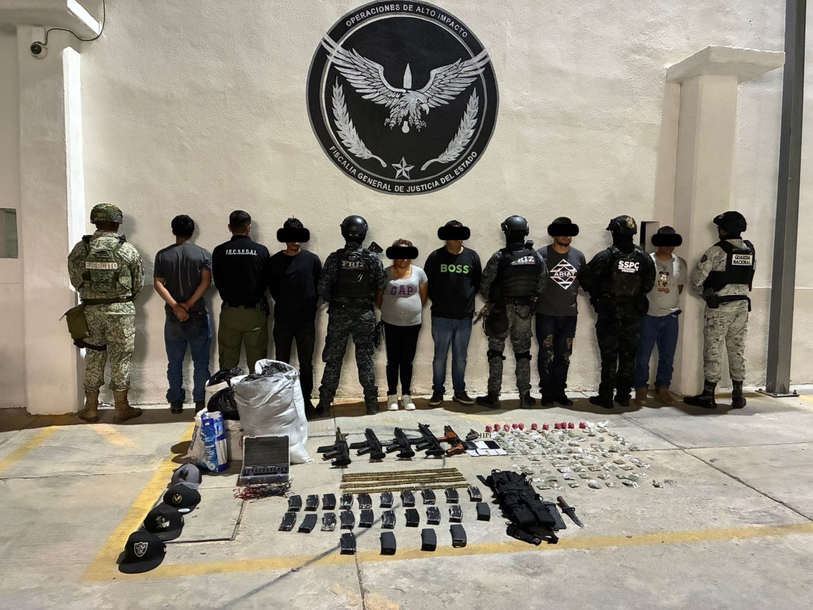 Todas las personas detenidas, junto con el armamento, la droga, los vehículos y demás objetos asegurados, fueron puestos a disposición de la autoridad competente, a fin de que se lleve a cabo la indagatoria de ley.