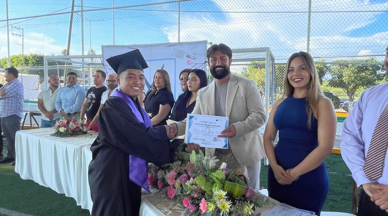 La ceremonia tuvo lugar en la cancha de futbolito del Rosario, espacio que sirvió de marco para destacar el talento, esfuerzo y disciplina de quienes concluyeron sus estudios. La presidenta municipal de Huanusco, Julieta Isamar Camacho García, fungió como madrina, acompañando a los graduados en este momento especial.