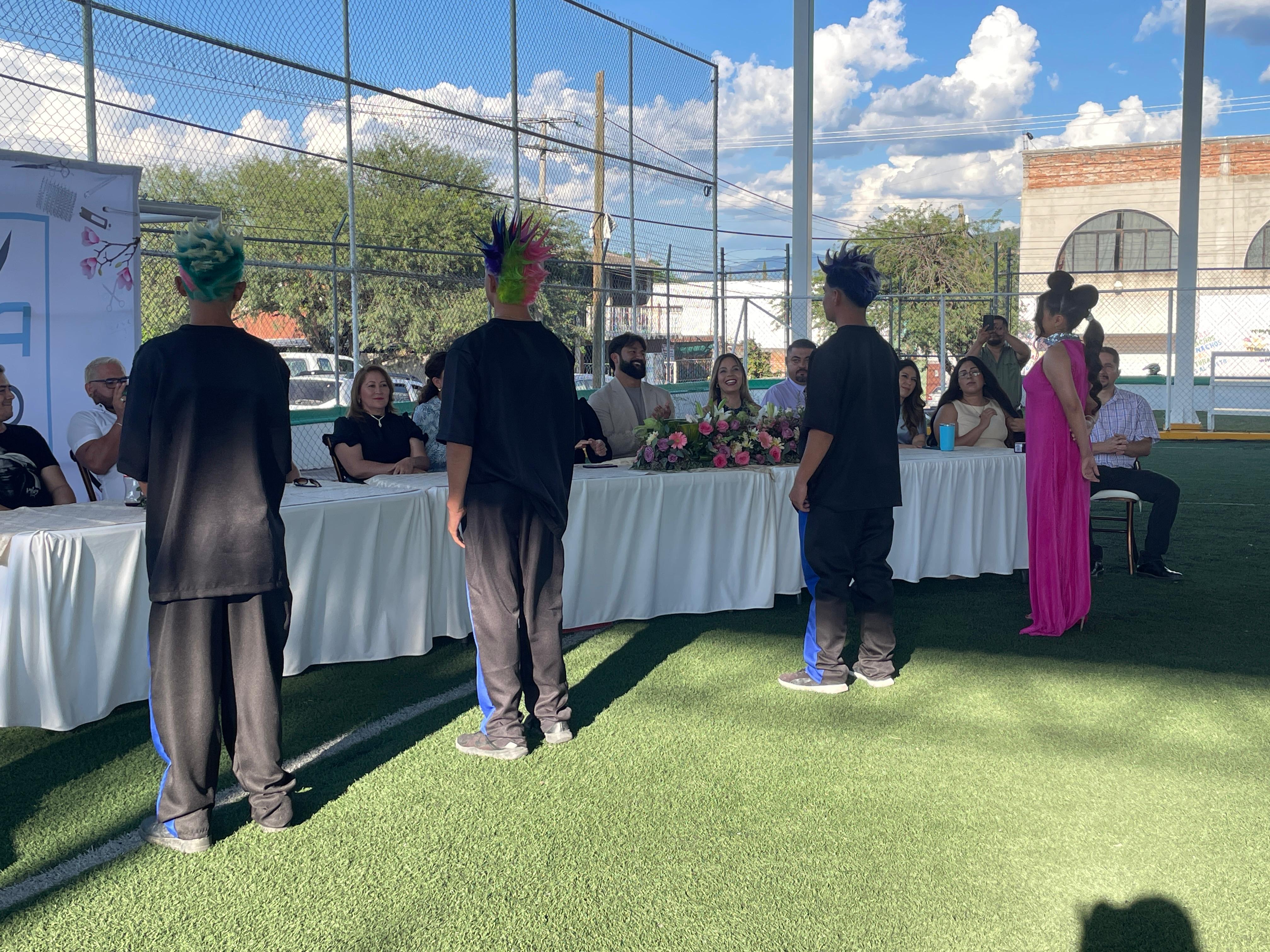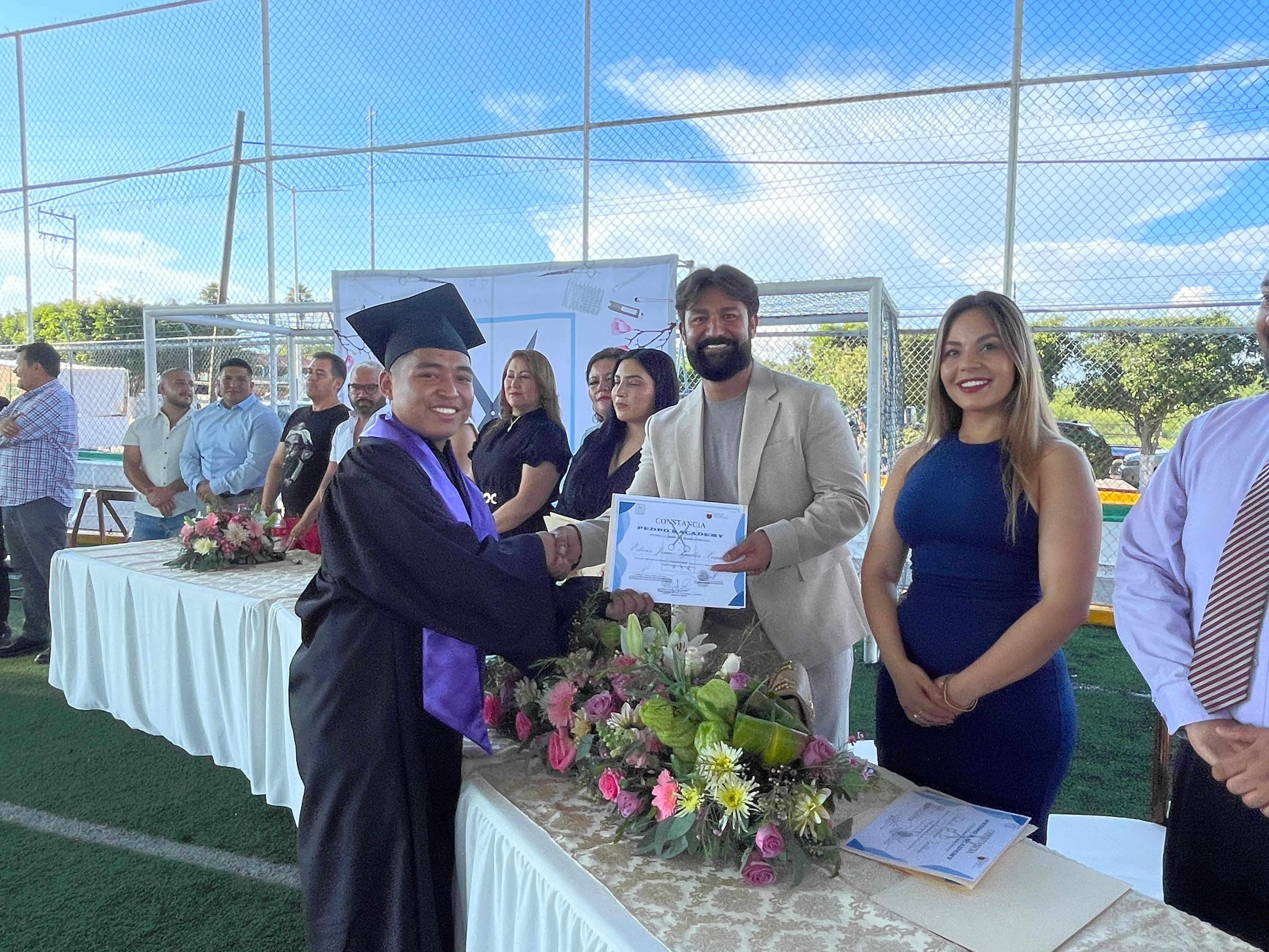 La ceremonia tuvo lugar en la cancha de futbolito del Rosario, espacio que sirvió de marco para destacar el talento, esfuerzo y disciplina de quienes concluyeron sus estudios. La presidenta municipal de Huanusco, Julieta Isamar Camacho García, fungió como madrina, acompañando a los graduados en este momento especial.
