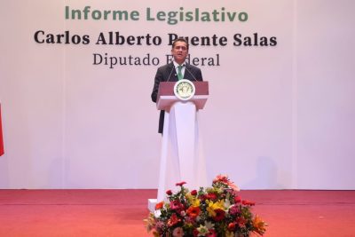 Zacatecas, Zac. El diputado federal Carlos Puente Salas, del Partido Verde Ecologista de México (PVEM), rindió su informe legislativo en el Teatro Fernando Calderón, donde además de dar cuenta de su labor en la Cámara de Diputados, lo más destacado fue la confirmación de su aspiración a la gubernatura de Zacatecas.