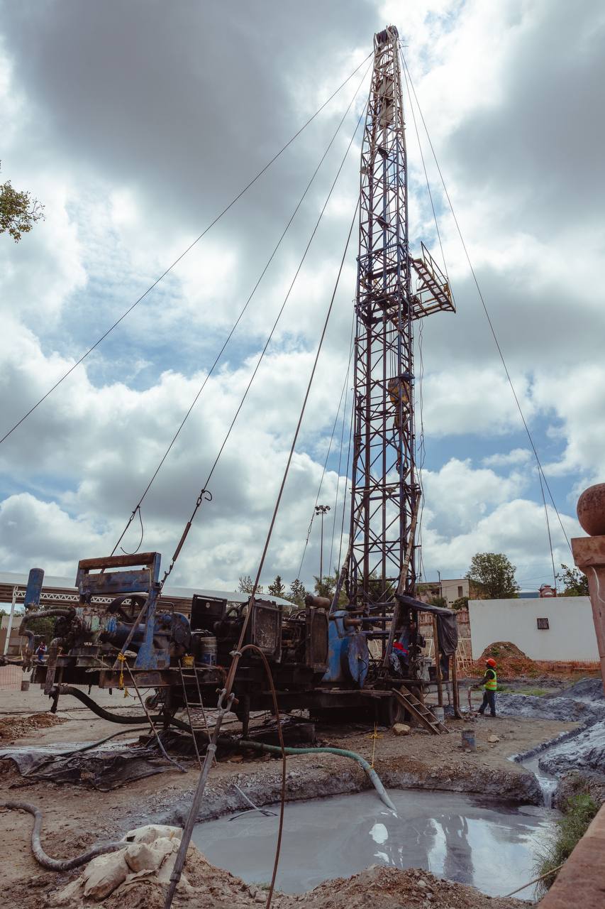 La obra contempla excavación y relleno de fosas de lodos, registro eléctrico, cementado del contrademe, colocación de tubería de acuerdo con la norma API 5LX, instalación de grava como filtro, lavado, aforo, toma de muestras de calidad del agua y videoinspección del pozo.