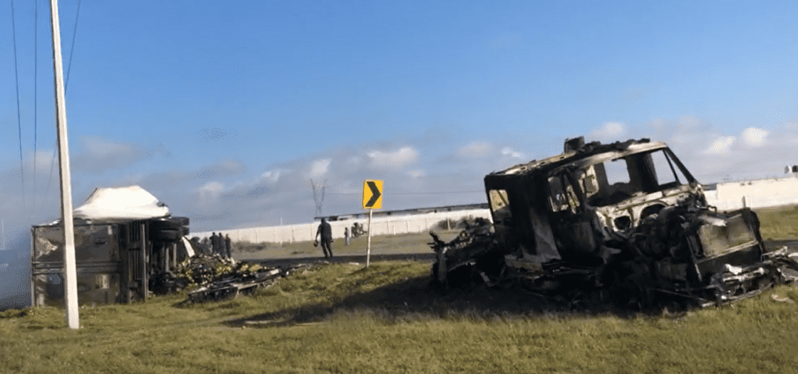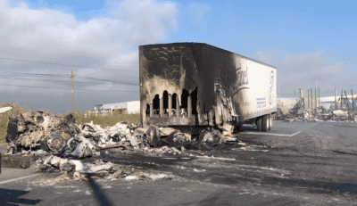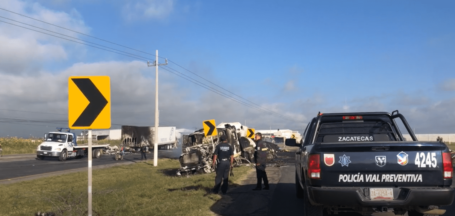 Zacatecas, Zac.– La madrugada de este viernes 3 de octubre se registraron bloqueos en distintos tramos carreteros de los municipios de Calera, Villanueva, Fresnillo, Río Grande, Cuauhtémoc y Sombrerete, mediante el uso de tractocamiones y vehículos pesados incendiados para obstruir la circulación.