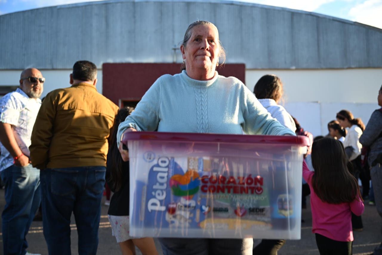 Además del Alcalde Sergio Vázquez Luján, en la entrega de apoyos alimentarios de Corazón Contento estuvieron presentes Víctor Humberto de la Torre Delgado, director general del Sistema Estatal para el Desarrollo Integral de la Familia (SEDIF); Sara Trujillo Gallegos, presidenta honorífica del DIF Municipal; Nieves Medellín Medellín, director general del Conalep, entre otros.