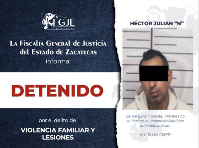 • Héctor Julián “N”, en Guadalupe, por violencia familiar y lesiones.