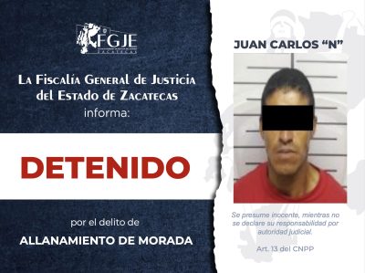 • Juan Carlos “N”, en Zacatecas, por allanamiento de morada.
