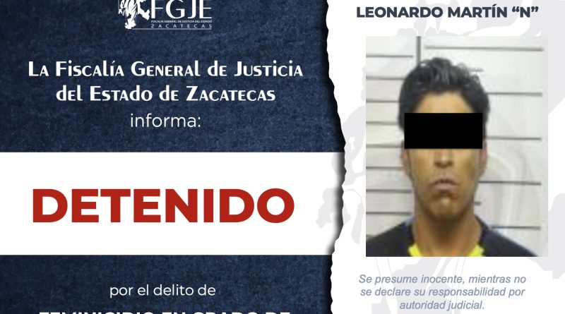 • Leonardo Martín “N”, en Guadalupe, por feminicidio en grado de tentativa.