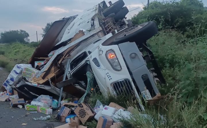 Jalpa, Zacatecas.- Elementos del Departamento de Protección Civil y Bomberos de Jalpa acudieron al reporte de un accidente tipo salida de carretera con volcadura, ocurrido sobre la vía Federal 54.