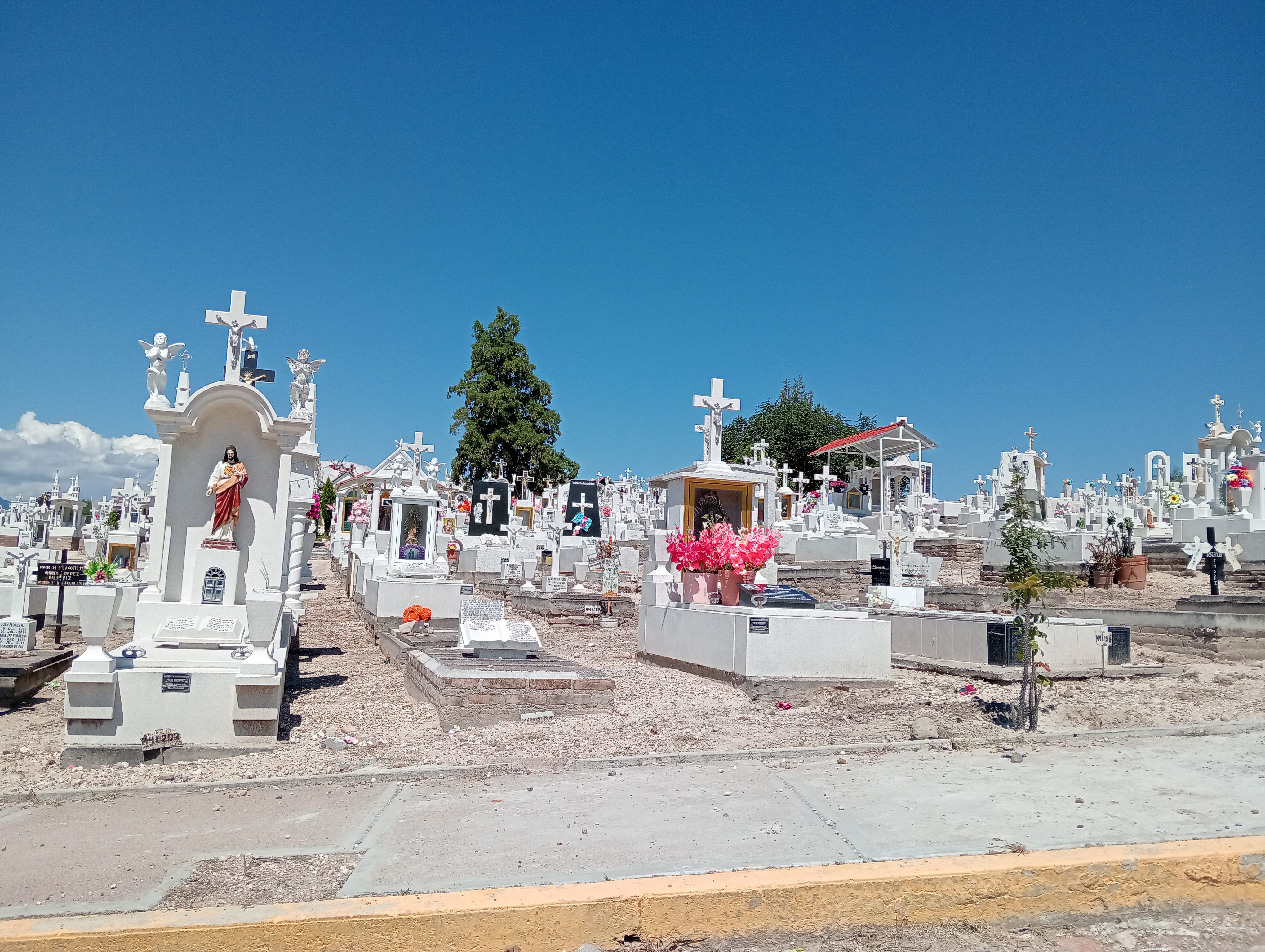 El municipio cuenta con dos cementerios, uno de ellos conocido como el panteón viejo, de gran valor histórico, y el nuevo panteón municipal, ubicado en la salida norte de la cabecera. En un recorrido realizado por ambos sitios, se constató que el panteón nuevo se encuentra prácticamente listo para recibir a los dolientes, con áreas despejadas, caminos transitables y espacios adecuados para la afluencia de visitantes.