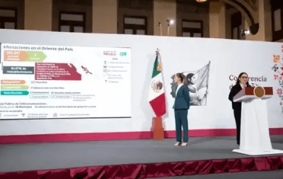 La directora general de la Comisión Federal de Electricidad (CFE), Emilia Calleja Alor, reportó que en los cinco estados resultaron afectados 262 mil 847 usuarios, de los que, al corte de las 6:00 horas de este lunes, se tiene un restablecimiento del 84.07 por ciento del suministro de energía eléctrica gracias al esfuerzo de más de 380 trabajadores en campo, vehículos terrestres, aéreos, plantas de emergencia e instalaciones de bombeo de agua. En materia de telecomunicaciones, se tiene un avance del 27 por ciento en el restablecimiento de la telefonía, lo que representa la recuperación de 44 sitios afectados y 595 mil 917 usuarios que ya están comunicados, mientras que, en el servicio de internet gratuito se han restablecido 205 puntos de acceso y 839 están en proceso; y la red de fibra óptica no presentó ninguna afectación.