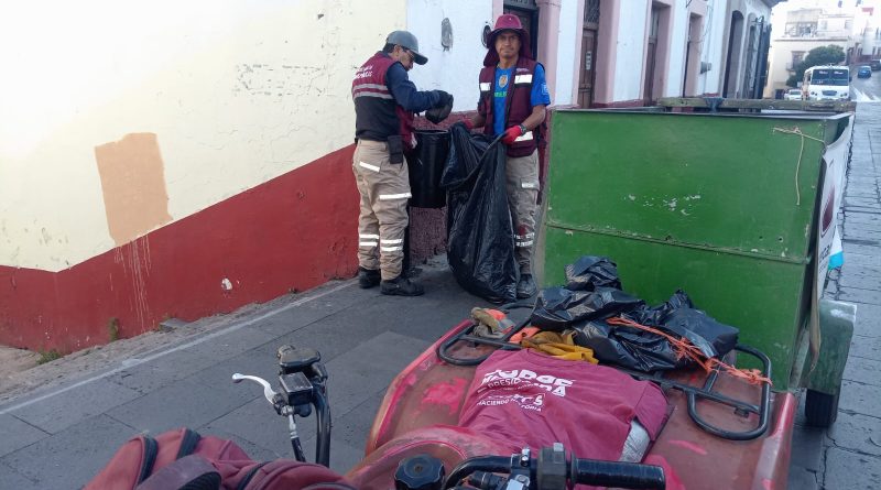 Cuadrillas de SOP realizan limpieza en primer cuadro de la ciudad durante Festival de Teatro de Calle
