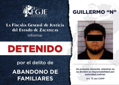 Guillermo “N”, detenido en Fresnillo, por el delito de abandono de familiares.