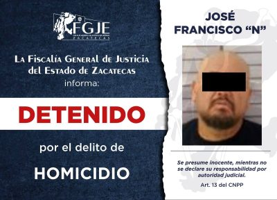 José Francisco “N”, también detenido en Fresnillo, señalado por el delito de homicidio.