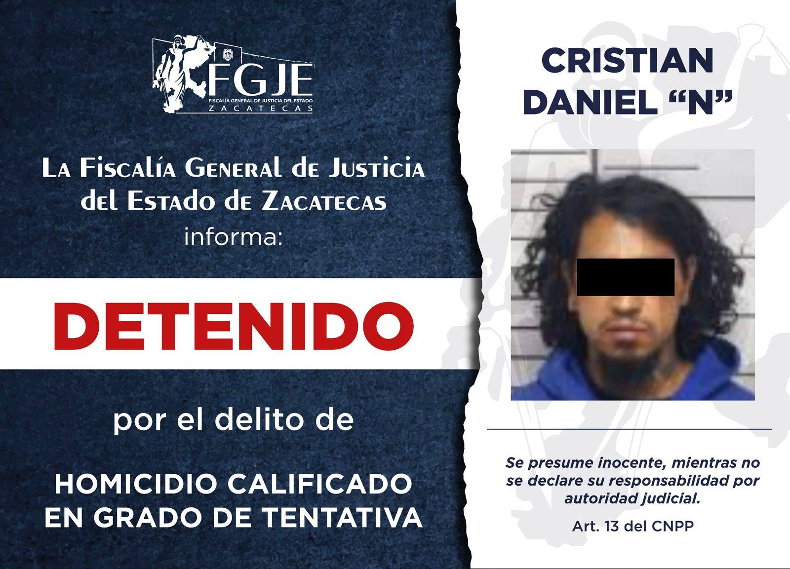 Cristian Daniel “N”, aprehendido en el municipio de Zacatecas, acusado del delito de homicidio calificado en grado de tentativa.