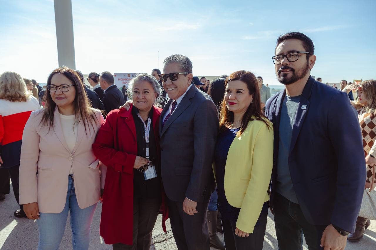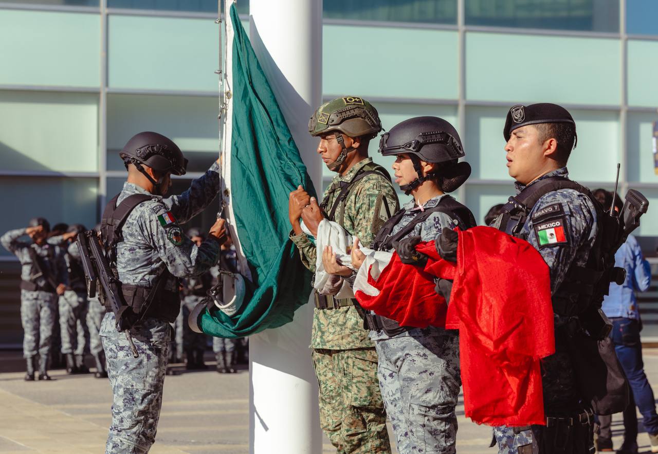 En el presídium también participaron Rodrigo Reyes Mugüerza, secretario general de Gobierno; Arturo Medina Mayoral, secretario de Seguridad Pública; Isaac Bravo López, comandante de la Decimoprimera Zona Militar; Vicente Dimayuga Canales, coordinador estatal de la Guardia Nacional; Cristian Paul Camacho Osnaya, fiscal general de Justicia del Estado; Francisco Esquivel Cruz, delegado de la Fiscalía General de la República; así como Osvaldo Cerrillo Garza, secretario técnico de la Mesa Estatal de Construcción de Paz, entre otros.
