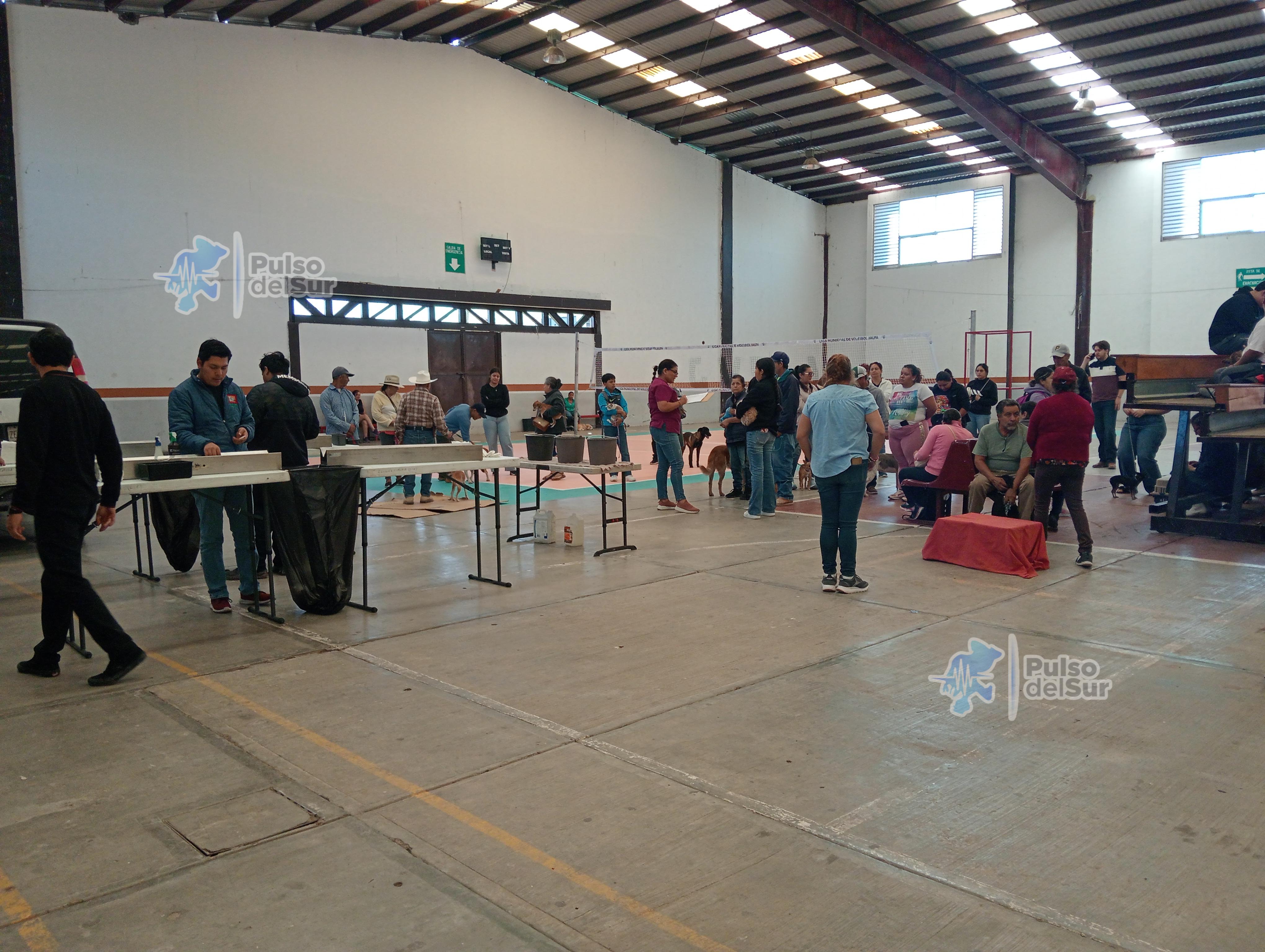 Jalpa, Zacatecas.– Con una destacada participación de la población, se lleva a cabo este día la campaña de esterilización canina y felina en las canchas techadas del municipio, como parte de las acciones impulsadas durante el mes de la esterilización.