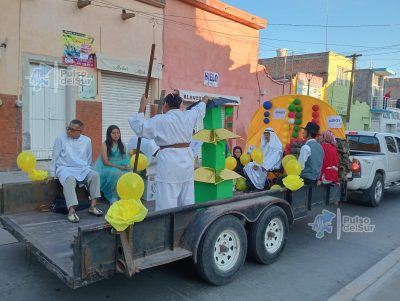 Jalpa, Zacatecas.– En un ambiente de fe y unidad, la Parroquia de San Antonio de Padua llevó a cabo una peregrinación con carros alegóricos como parte de las actividades del Rosario Misionero y del mes dedicado a las misiones.