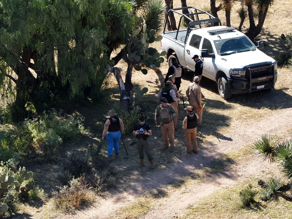 El segundo de los equipos estuvo en Pánfilo Natera, en donde realizaron igualmente una búsqueda forense con revisión de varios espacios, en los que se utilizaron georadares, herramientas de mano y drones.