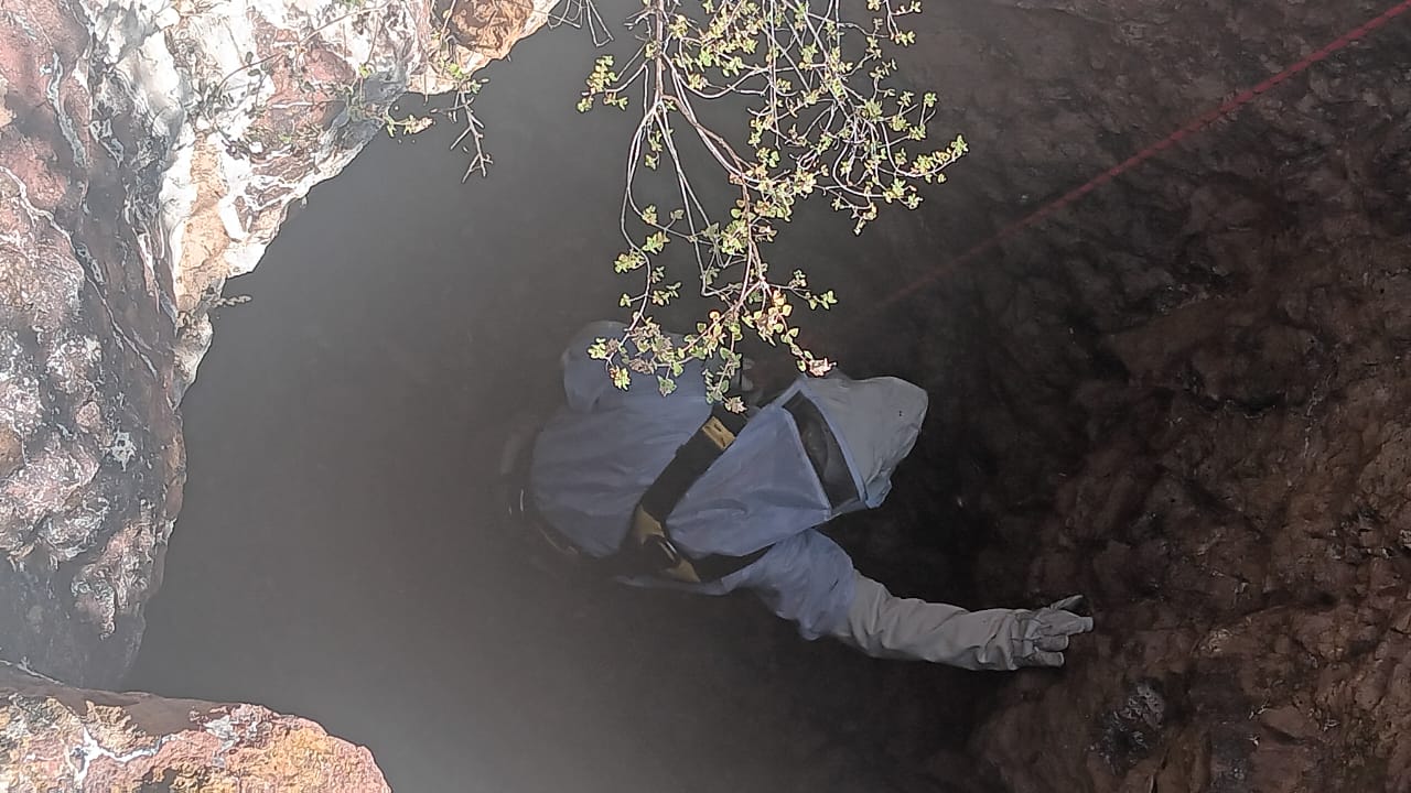 En esta localidad se incluyó la revisión de tiros y barrancos, en los que participó personal de la Coordinación Estatal de Protección Civil quienes descendieron a estos sitios utilizando la técnica de rapel.
