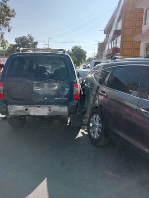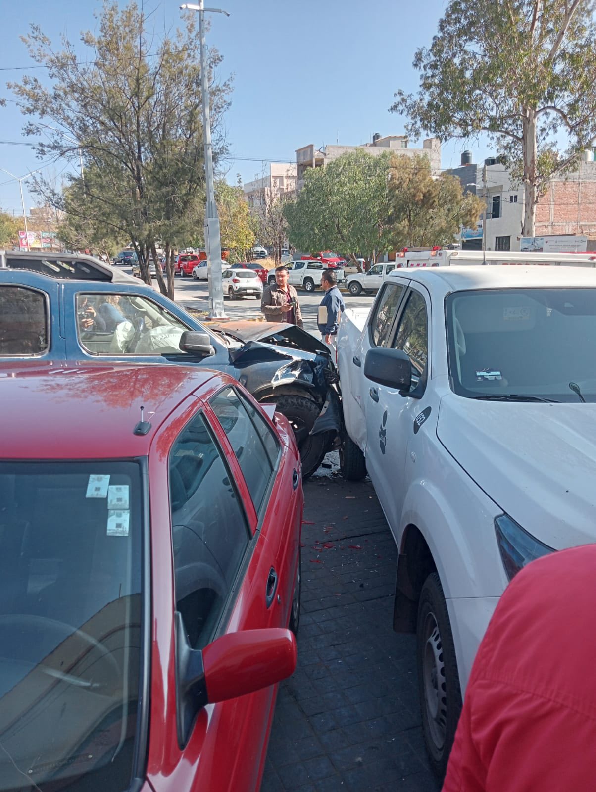 De acuerdo con los primeros reportes, cuatro de las unidades se encontraban estacionadas cuando una camioneta las impactó por alcance, provocando daños considerables en la parte trasera de los vehículos.