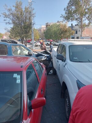 Zacatecas, Zac.– Elementos de la Coordinación Estatal de Protección Civil acudieron a la Avenida 5 de Mayo, luego de registrarse un accidente vehicular por alcance en el que participaron cinco automóviles.