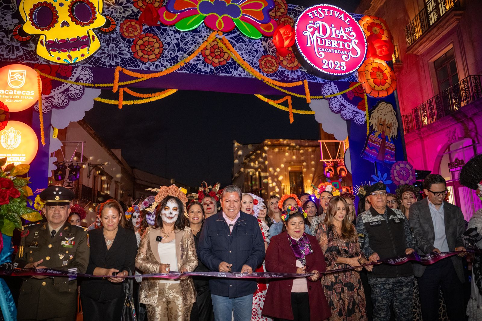 Encabeza Gobernador David Monreal recorrido inaugural y homenaje a personajes zacatecanos en Festival de Día de Muertos 2025