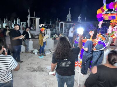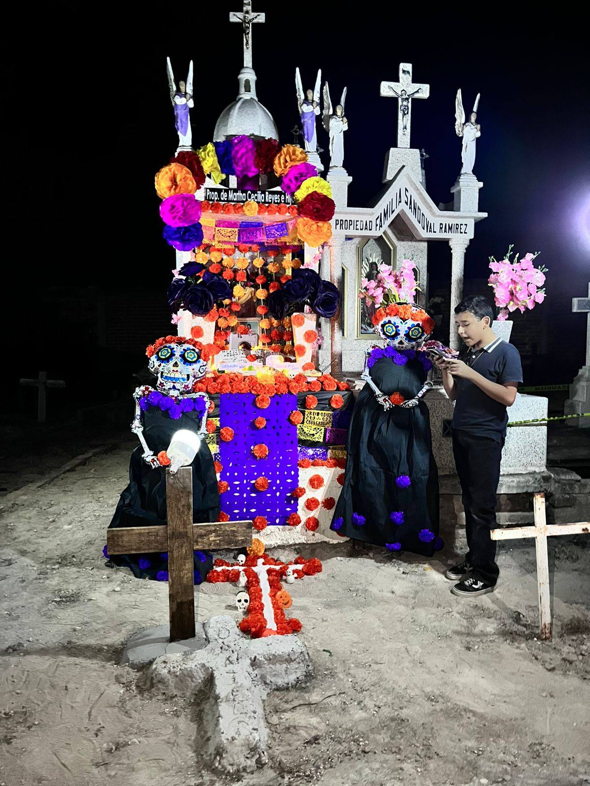 Bajo la dirección de la alcaldesa Gaby Arellano Quezada, se llevó a cabo la quinta edición de este evento que busca mantener vivas las costumbres mexicanas y fortalecer la identidad cultural del pueblo. Entre luces, música y alegría, las familias disfrutaron de una noche especial en la que destacaron el concurso de decoración de tumbas y un emocionante show de fuego, que llenó de asombro a los asistentes.
